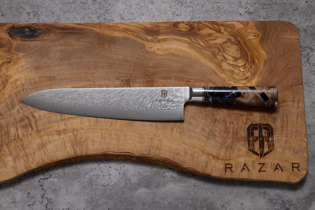 With a VG10 inner core and 67 layers of Damascus steel, these beautiful blades will breeze through just about anything they come up against in the kitchen.