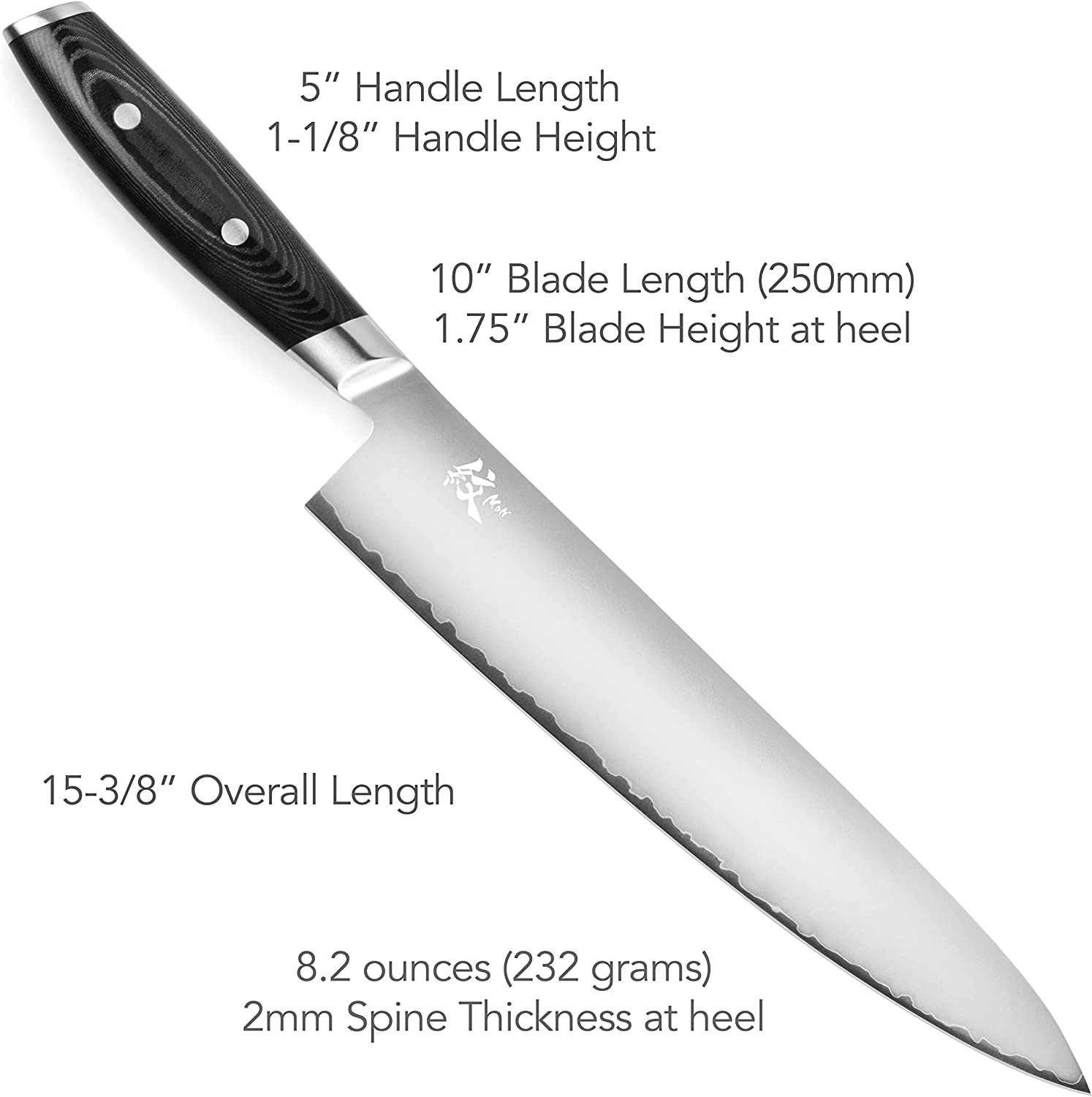 Blade core is made from 3-layer Japanese Cobalt Molybdenum Vanadium VG10 superior stainless steel, clad by high quality stainless steel from both sides.